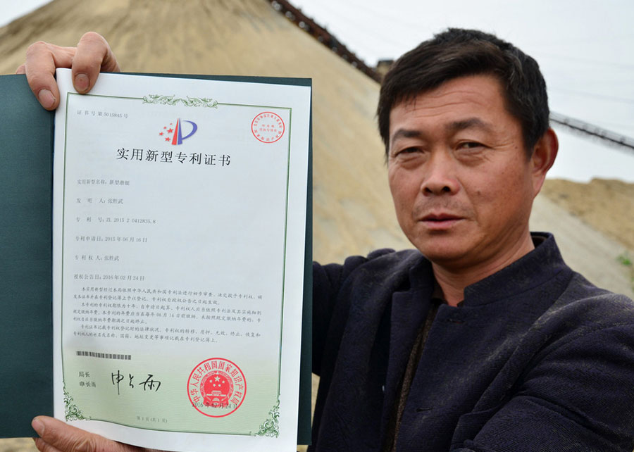 Zhang Shengwu muestra la patente concedida por la Oficina Estatal de Propiedad Intelectual, para la invención de un nuevo submarino en su hogar.