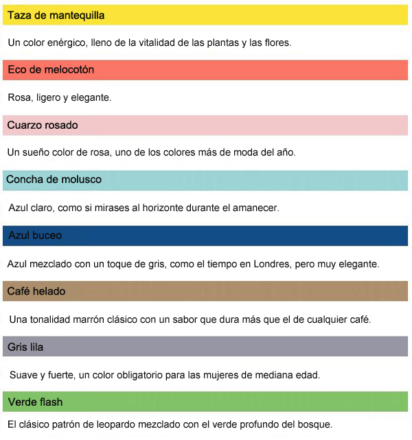 Además de asesoramiento de la supermodelo, Pantone, la autoridad de los colores, publicó un conjunto de colores que pueden estar muy de moda en 2016: