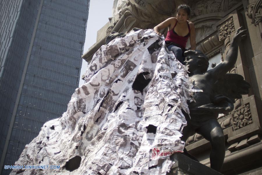 Una mujer participa durante una protesta de madres y familiares de víctimas de desaparición forzada provenientes de todo el país, en el marco del Día de las Madres, en el Angel de la Independencia en la Ciudad de México, capital de México, el 10 de mayo de 2016. (Xinhua/Alejandro Ayala)