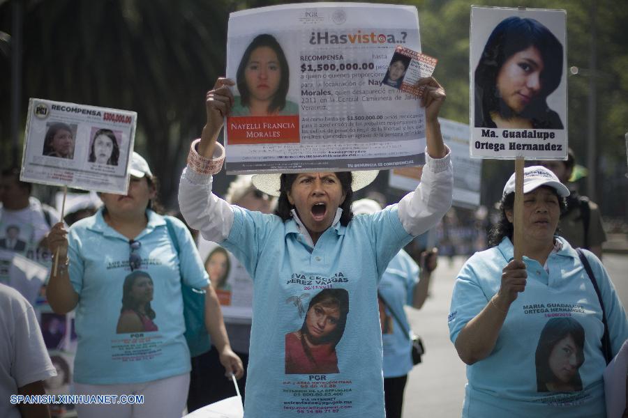 CIUDAD DE MEXICO, mayo 10, 2016 (Xinhua) -- Mujeres sostienen pancartas durante una protesta de madres y familiares de víctimas de desaparición forzada provenientes de todo el país, en el marco del Día de las Madres, en el Angel de la Independencia en la Ciudad de México, México, el 10 de mayo de 2016. (Xinhua/Alejandro Ayala)