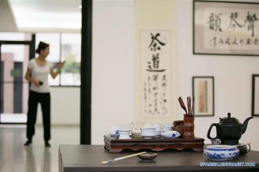 Vista de un juego de té chino en las instalaciones del recién inaugurado Instituto Confucio de la Universidad Autónoma de Yucatán, en Mérida, capital de Yucatán, en México, el 13 de mayo de 2016. De acuerdo con información de fuentes oficiales, la creación del Instituto Confuncio de la Universidad Autónoma de Yucatán tiene como objetivo promover la ense?anza del idioma chino, así como organizar y difundir actividades para el intercambio cultural y académico entre China y México. (Xinhua/Str)