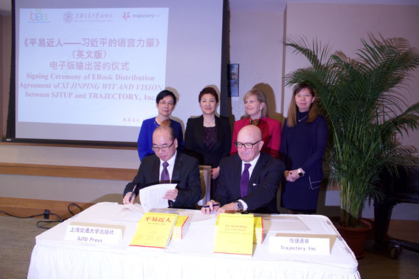 El 14 de mayo, en Nueva York, Jiang Yaopeng, secretario del Comité del Partido de la editorial de la Universidad Jiao Tong de Shanghai y James Bryant, director de la editorial Trayectoria firmaron en la Universidad de Columbia el contrato para la edición y distribución en inglés del libro “Xi Jinping: Ingenio y Visión”.
