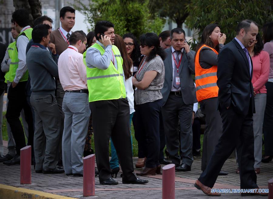 Ciudadanos reaccionan frente a sus oficinas luego del sismo de 6.7 grados en la escala de Richter, en la ciudad de Quito, capital de Ecuador, el 18 de mayo de 2016. Un nuevo sismo de 6.8 grados en la escala Richter sacudió el miércoles a las 11:46 hora local (16:46 GMT) la costa norte de Ecuador, informó el Instituto Geofísico. Previamente, otro fuerte sismo también de magnitud 6.8 grados Richter se registró en la madrugada del miércoles al sur del cantón Muisne en Esmeraldas. Según el Instituto Geofísico se tratan de réplicas del terremoto de 7.8 grados ocurrido en la costa ecuatoriana el 16 de abril, que dejó al menos 661 muertos, miles de damnificados y la destrucción de poblados turísticos. (Xinhua/Santiago Armas)