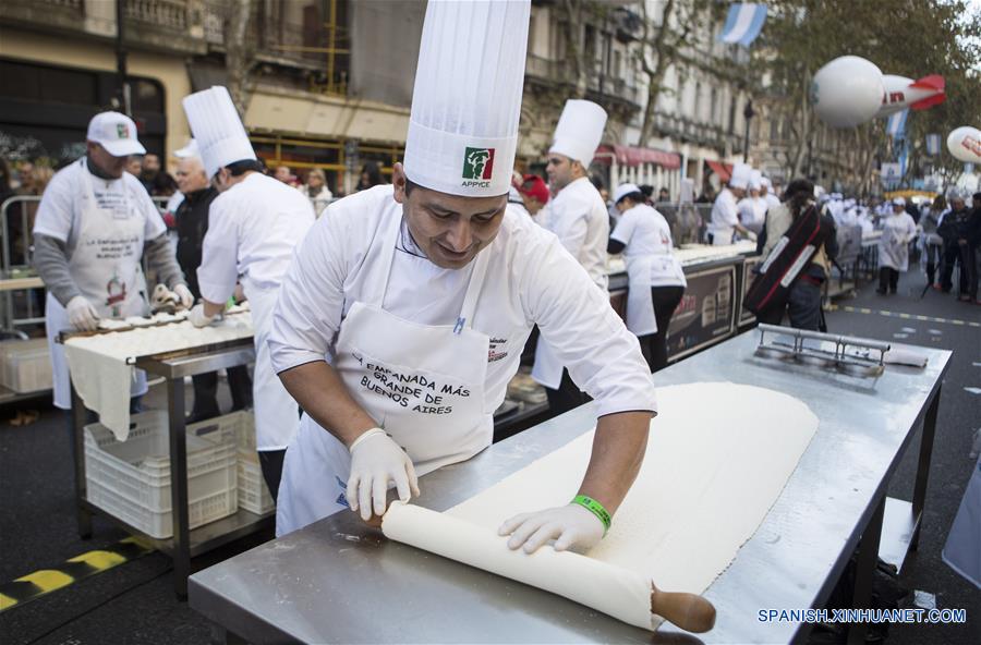 BUENOS AIRES, 22 may (Xinhua) -- Maestros pizzeros y casi 100 colaboradores realizaron este domingo en Buenos Aires una empanada de 80 metros de largo, con un fin solidario.
