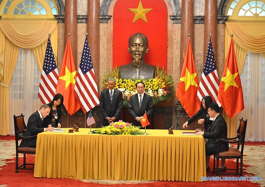 Obama está de visita en Vietnam de lunes a miércoles por invitación del presidente de Vietnam, Tran Dai Quang.
