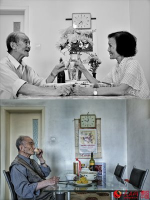Una serie de fotos de una pareja con 60 a?os de matrimonio tocó el corazón de muchos internautas chinos. El esposo, de 99 a?os, enviudó cuando su esposa falleció el pasado a?o. (Foto: Pueblo en Línea)