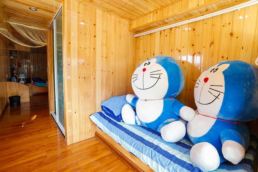 Una habitación llena de personajes de dibujos animados.