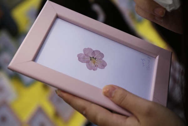 Wuhan, 01/06/2016(Pueblo en Línea)-Un estudiante graduado en la Universidad de Wuhan, en la provincia de Hubei, ha montado un gran negocio vendiendo flores de cerezo enmarcadas, conocidas como la "belleza del campus", en un momento en el que los estudiantes se preparan para salir al mundo profesional después de la graduación.