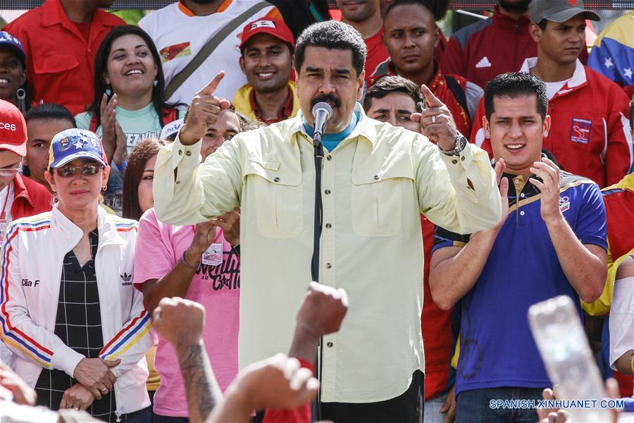 El presidente venezolano, Nicolás Maduro (c), pronuncia un discurso durante un acto con jóvenes, en Caracas, Venezuela, el 1 de junio de 2016. El presidente venezolano Nicolás Maduro instó el miércoles a la juventud y a los movimientos progresistas de todo el país a mantenerse en campa?a permanente contra la intención del "imperio (Estados Unidos de América) de intervenir" en el país caribe?o. (Xinhua/Boris Vergara)