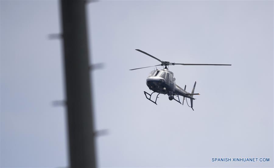 Un helicóptero sobrevuela el campus de la Universidad de California Los Angeles, en Los Angeles, estado de California, Estados Unidos de América, el 1 de junio de 2016. El jefe del Departamento de Policía de Los Angeles, Charlie Beck, confirmó que el responsable del incidente ocurrido el miércoles por la ma?ana en el campus de la Universidad de California Los Angeles (UCLA) se suicidó después de matar a una persona y que el campus está seguro. (Xinhua/Yang Lei)