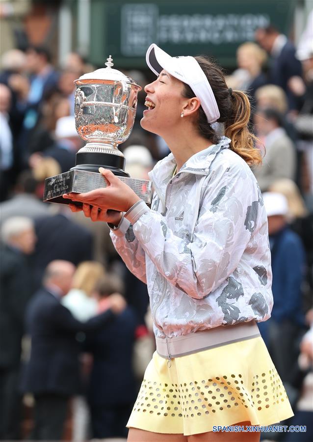 Muguruza se convierte así en la segunda tenista espa?ola en ganar este torneo, tras Arancha Sánchez-Vicario.(Xinhua/Ye Pingfan)