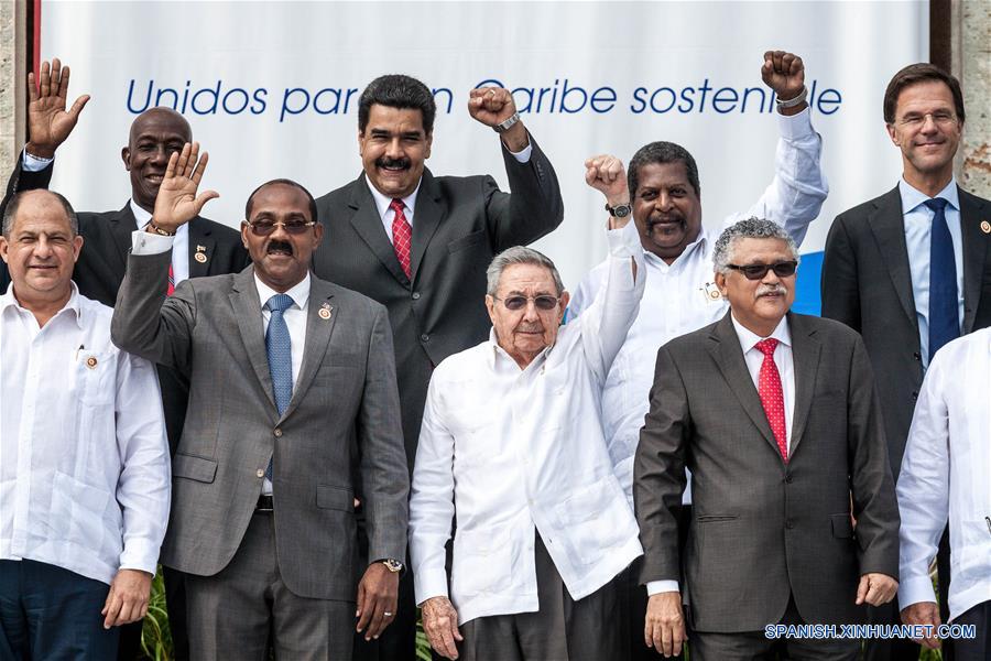 El presidente de Cuba, Raúl Castro (c-frente), posa para las fotografías grupales con los invitados durante la VII Cumbre de la Asociación de Estados del Caribe (AEC), en La Habana, Cuba, el 4 de junio de 2016. Presidentes de los países miembros de la AEC ratificaron el sábado el compromiso de buscar acciones concretas comunes para afrontar el cambio climático que amenaza la existencia misma de algunas naciones del área. (Xinhua/Liu Bin)