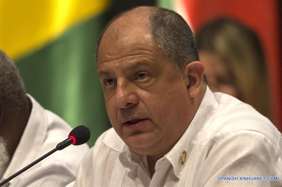 El presidente de Costa Rica, Luis Guillermo Solís, participa durante la VII Cumbre de la Asociación de Estados del Caribe (AEC), en La Habana, Cuba, el 4 de junio de 2016. Presidentes de los países miembros de la AEC ratificaron el sábado el compromiso de buscar acciones concretas comunes para afrontar el cambio climático que amenaza la existencia misma de algunas naciones del área. (Xinhua/Ismael Francisco/Cubadebate)