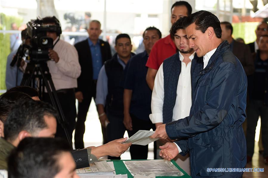 MEXICO, 5 jun (Xinhua) -- El presidente de México, Enrique Pe?a Nieto, ejerció la tarde de este domingo su voto secreto para elegir la integración de la Asamblea Constituyente de la Ciudad de México, en el marco de las elecciones que se desarrollan en 14 estados del país.