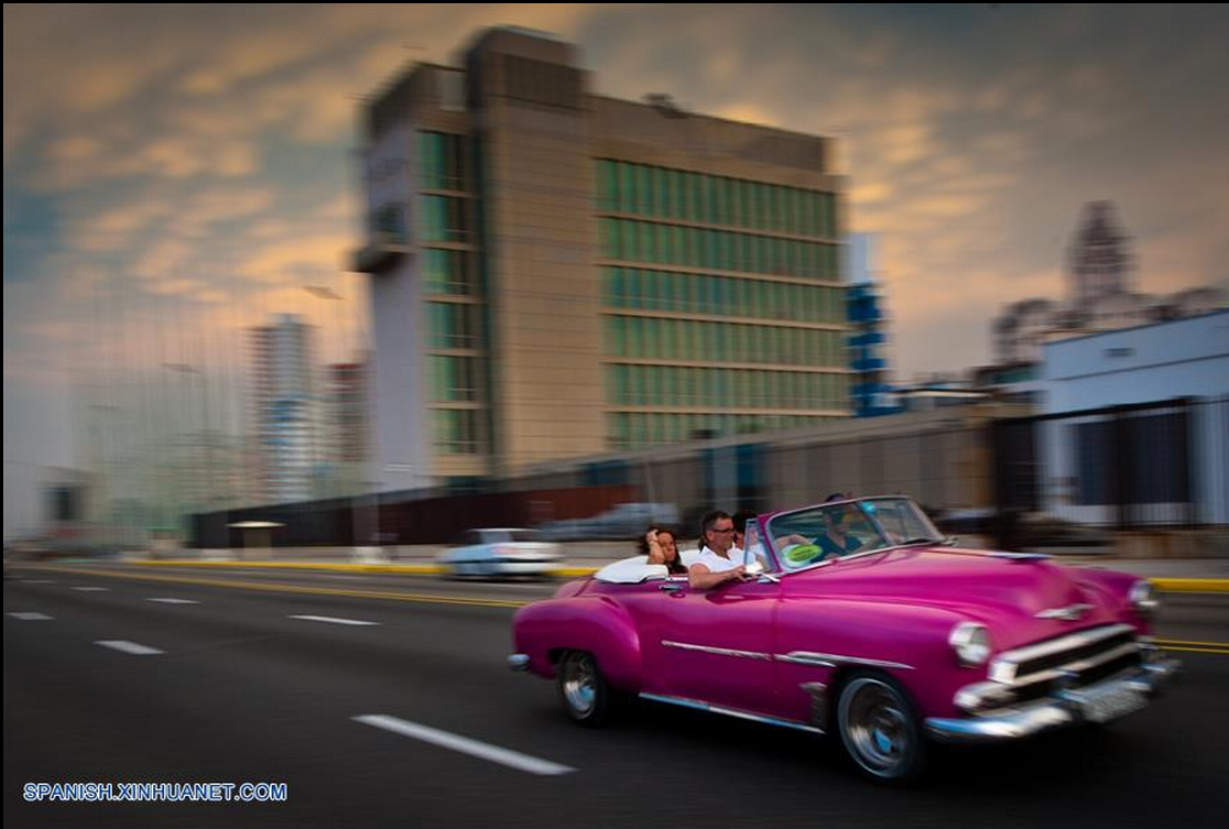 LA HABANA, junio 6, 2016 (Xinhua) -- Imagen del 19 de julio de 2015 de personas trasladándose en un automóvil antiguo cerca de la Sección de Intereses de Estados Unidos de América, en La Habana, capital de Cuba. De acuerdo con la directora de Comunicación del Ministerio de Turismo de Cuba, Janet Ayala, el 7 de junio la ciudad de La Habana recibirá el nombramiento oficial de Ciudad Maravilla del Mundo de parte de la Fundación Siete Nuevas Maravillas (New 7 Wonders). La Habana compitió con otras 1,200 ciudades que aspiraban a recibir este reconocimiento. (Xinhua/Liu Bin)