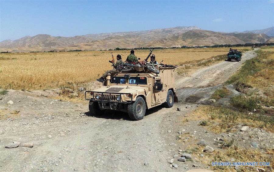FARYAB, junio 11, 2016 (Xinhua) -- Imagen del 10 de junio de 2016 de miembros de la fuerza de seguridad afgana permaneciendo a bordo de un vehículo militar durante una operación militar llevada a cabo en el distrito de Qaisar de la provincia de Faryab, Afganistán. Las fuerzas afganas que enfrentan a los talibanes en la norte?a región han adoptado una postura agresiava ya que más de tres docenas de militantes armados han muerto. (Xinhua/Mohammad Jan Aria)