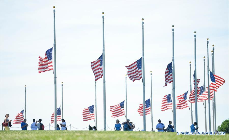 Banderas nacionales estadounidenses ondean a media asta en La Suprema Corte de Nueva York (5)