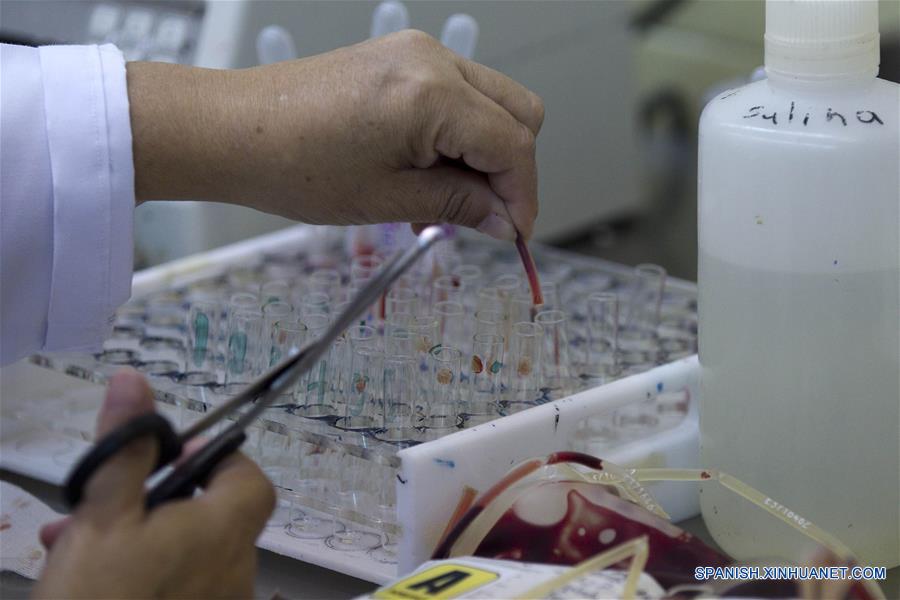 TEGUCIGALPA, junio 14, 2016 (Xinhua) -- Un técnico analiza una muestra de sangre para saber su compatibilidad en transfusiones para los pacientes, durante una campa?a llevada a cabo en el marco del Día Mundial del Donante de Sangre, en el Hospital Escuela Universitario, en la ciudad de Tegucigalpa, Honduras, el 14 de junio de 2016. El Día Mundial del Donante de Sangre se celebra cada a?o en todo el mundo el 14 de junio, y en 2016 el tema de la campa?a es "La sangre nos conecta a todos", para agradecer a los donantes y destacar la conexión existente entre ellos y los pacientes. (Xinhua/Rafael Ochoa)
