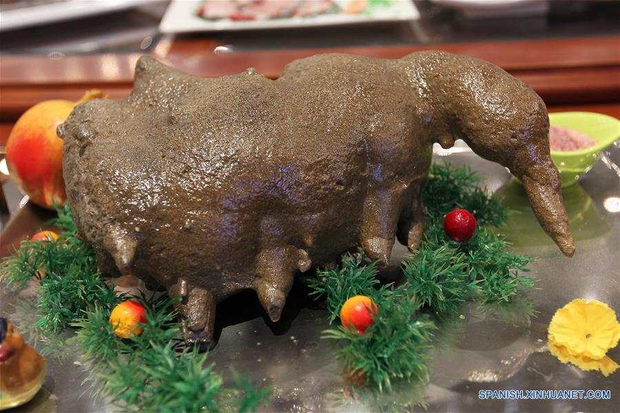 HAMI, junio 14, 2016 (Xinhua) -- Una piedra con forma de un platillo es expuesta en una bandeja, en el museo de piedras raras local, en Hami, en la Región Autónoma Uygur de Xinjiang, en el noroeste de China, el 14 de junio de 2016. En total, 1,088 "platillos" hechos de pidras raras, como madera silicificada, ágata y piedra de sandre, fueron exhibidos en el museo el martes. (Xinhua/Polat)