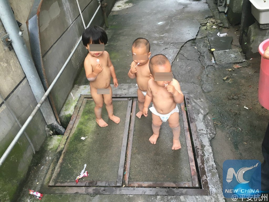 Esta podría haber sido la conversación de tres bebes que se aprovecharon de una negligencia de sus padres para irse a caminar por las calles de Hangzhou. La insólita aventura tuvo afortunadamente un final feliz.