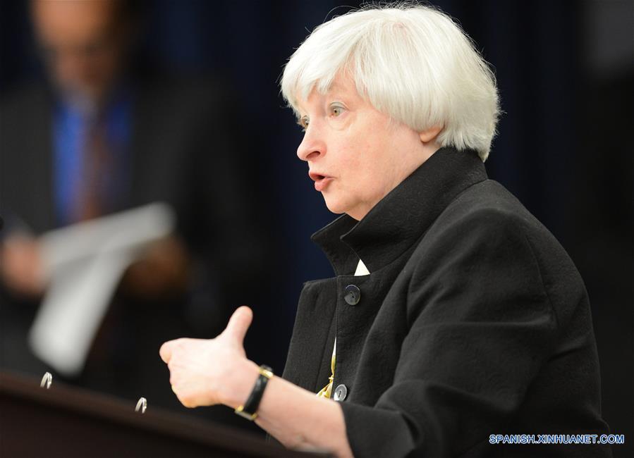 Presidenta de La Reserva Federal (Fed) de Estados Unidos, Janet Yellen, habla durante una conferencia de prensa en Washington D.C., capital de los Estados Unidos, 15 de junio de 2016. La Reserva Federal (Fed) de Estados Unidos el miércoles mantuvo las tasas de interés sin cambio después de concluir su reunión de dos días. (Xinhua / Gao Pan)