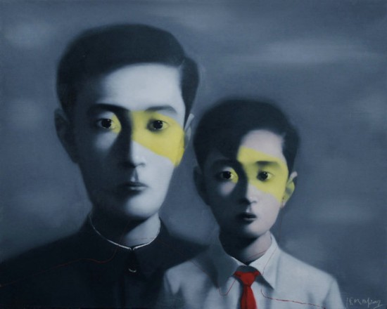 “Padre e hijo”, obra de Zhang Xiaogang fue vendida por 4.600.000 yuanes (690.000 dólares) en la sesión de primavera de la Subasta Poly Internacional 2014. [Foto: artron.net]