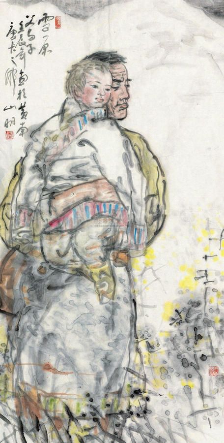 “Padre e hijo en la meseta”, obra de Wu Shanming vendida por 920.000 yuanes en la subasta de primavera Shanghai Baolong 2012. [Foto: artron.net]