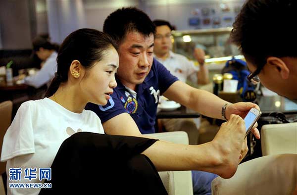 Yang Pei (a la izquierda) suma a más seguidores suyos en WeChat, la red social chino más popular. [Foto: Xinhua]
