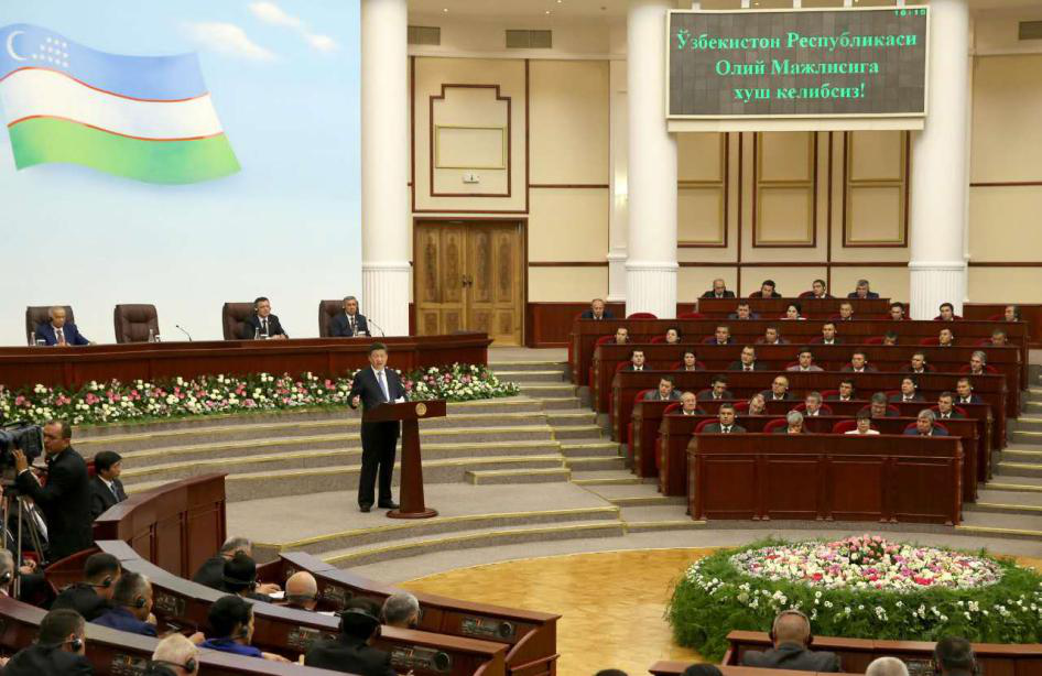 Xi Jinping, presidente de China, pronuncia un discurso en la Cámara Legislativa de la Asamblea Suprema de Uzbekistán en Tashkent, Uzbekistán, 22 de junio de 2016. (Foto: Xinhua / Ma Zhancheng)
