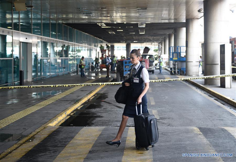 Trabajadores inspeccionan los da?os a la entrada del Aeropuerto Internacional Ataturk, en Estambul, Turquía, el 29 de junio de 2016. Turquía anunció el miércoles un día de luto nacional por las 41 vidas perdidas anoche durante los letales ataques con bomba perpetrados en el Aeropuerto Ataturk de Estambul, uno de los más transitados en Europa. En todo el país se izaron las banderas a media asta por los muertos, entre los cuales hay 12 extranjeros de Arabia Saudí, Irak, Túnez, Irán, Ucrania, Jordania y Uzbekistán. (Xinhua/Depo Photos/ZUMAPRESS)
