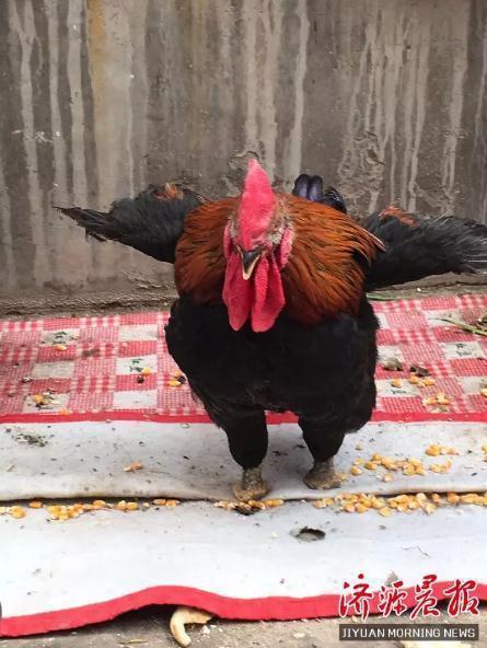 El gallo a veces se mantiene en pie sobre una sola para para aliviar el dolor de la otra. [Foto/Jiyuan Morning News]