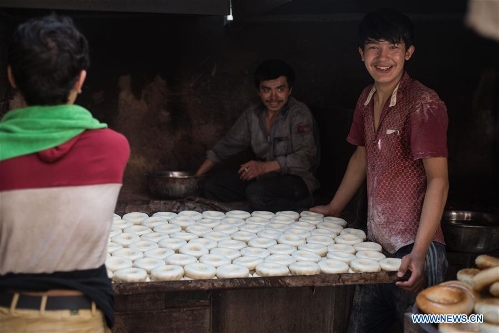 El famoso Nang, la torta crujiente que es el alimento básico del pueblo Kashgar de Xinjiang. Los panaderos invierten más de 16 horas para lograr producir cuatro o cinco mil Nangs para la población. (Foto: Bu Duomen)