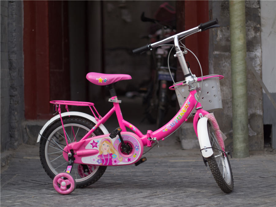 Una bicicleta de ni?a peque?a en un hutong de Beijing.