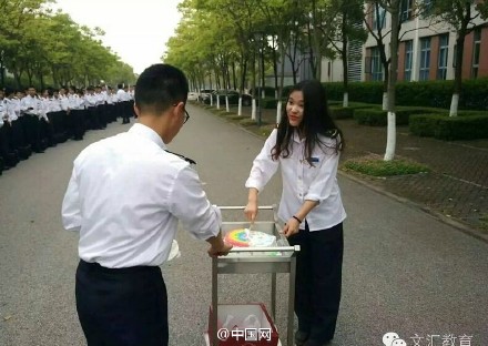 280 condiscípulos celebran el cumplea?os de Wu, la única mujer que estudia ingeniería en marina mercante en la Universidad de Shanghai. [Foto de Sina Weibo]