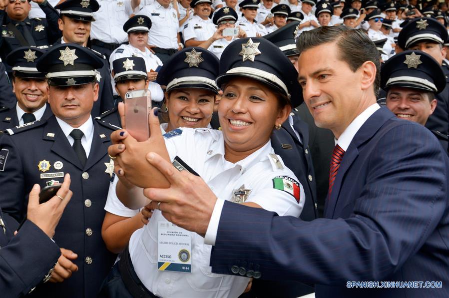 CIUDAD DE MEXICO, julio 13, 2016 (Xinhua) -- Imagen cedida por la Presidencia de México del presidente mexicano, Enrique Pe?a Nieto (d-frente), posando durante la ceremonia por el 88 Aniversario de la Policía Federal y el Día del Policía Federal, en la Ciudad de México, capital de México, el 13 de julio de 2016. (Xinhua/Presidencia de México)