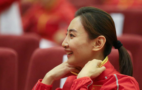 La estrella del trampolín He Wenna asiste a la ceremonia. [Foto/Xinhua]