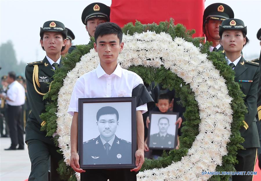 El miércoles una ceremonia fue llevada a cabo para recibir los cuerpos del cabo Li Lei, de 22 a?os de edad, y el sargento mayor Yang Shupeng, de 33 a?os, quienes murieron durante un enfrentamiento reciente en el conflicto que afecta a Sudán del Sur. (Xinhua/Yin Gang)
