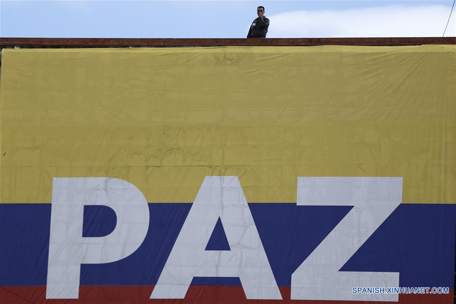 Una bandera con la palabra "PAZ" es exhibida durante el desfile militar con el lema "La Paz es la Victoria" como parte de la conmemoración del 206 aniversario de la Independencia de Colombia, en Bogotá, capital de Colombia, el 20 de julio de 2016. De acuerdo con información de la prensa local, miembros del Ejército, la Armada, la Fuerza Aérea y la Policía Militar participaron en un desfile militar al que asistieron cientos de residentes en Bogotá. (Xinhua/Juan Páez/COLPRENSA)