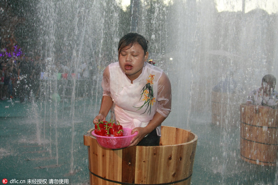 Una mujer participa en el reto celebrado en Hangzhou, provincia de Zhejiang, el 20 de julio de 2016. [Foto/IC]