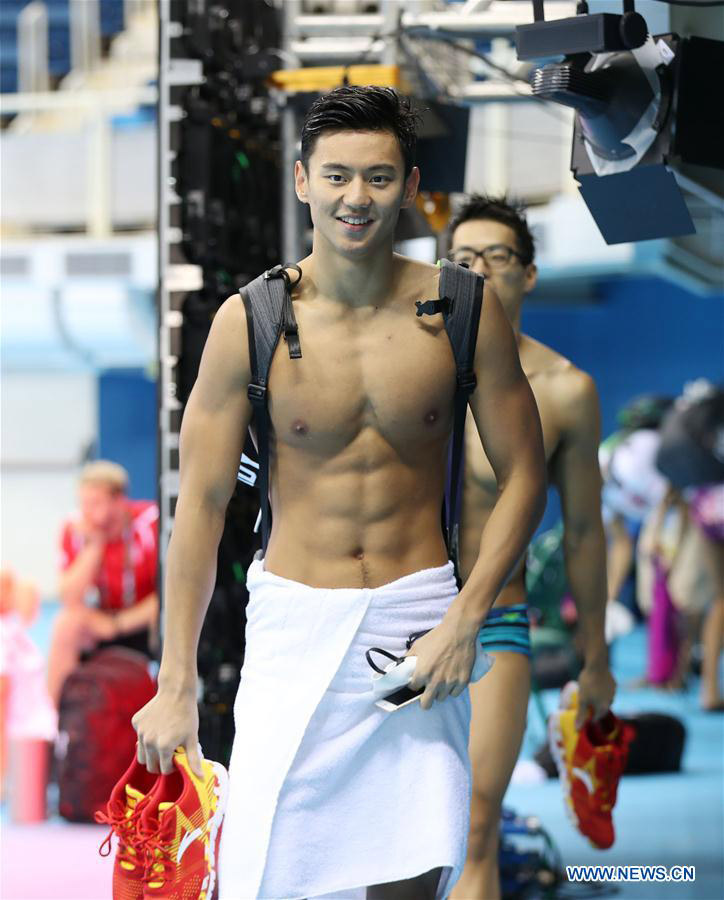 El nadador chino Ning Zetao durante una sesión de entrenamiento en el Estadio Olímpico de Río de Janeiro, Brasil, 31 de julio de 2016. Los miembros del Equipo Nacional de Natación de China ya arribaron a Río de Janeiro y comenzaron este domingo la fase de adaptación. [Foto: Ding Xu]