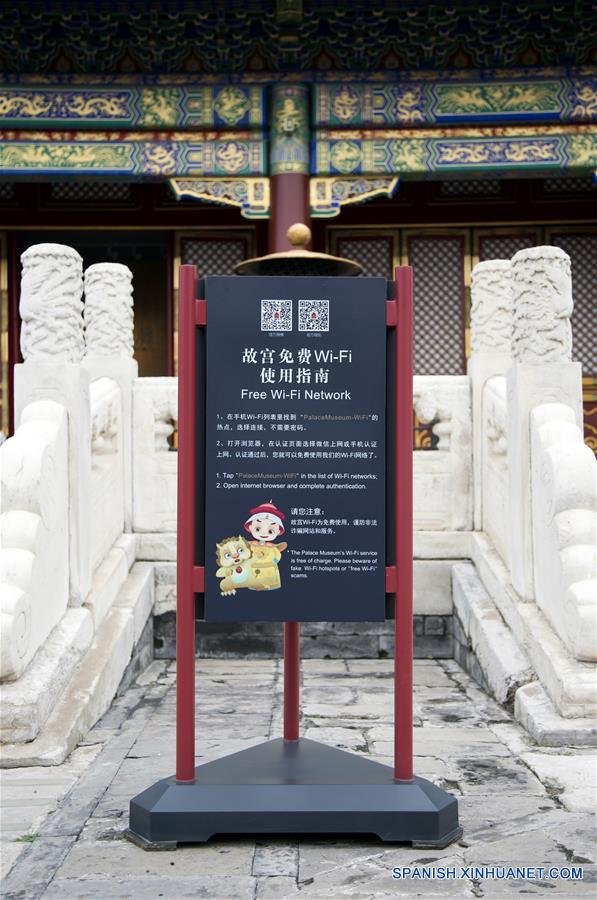Vista de una guía del usuario para la conexión Wi-Fi gratuita en el Museo del Palacio en Beijing, capital de China, el 1 de agosto de 2016. Visitantes podrán disfrutar de Wi-Fi gratuito en zonas centrales del Museo del Palacio desde el 1 de agosto en el hotspot "PalaceMuseum-WiFi". (Xinhua/Str)