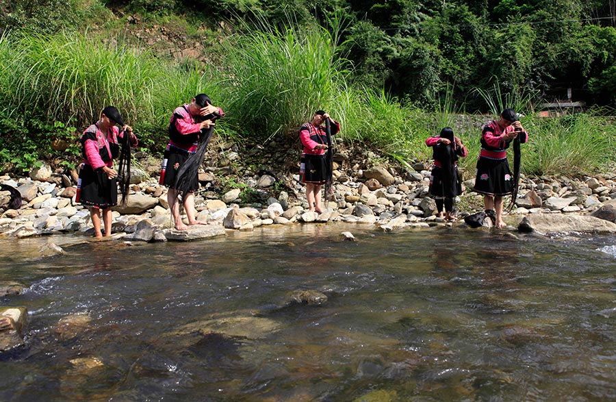 Las mujeres de etnia Yao del pueblo Huangluo, región autónomaGuangxi Zhuang. [Foto: Huo Yan]