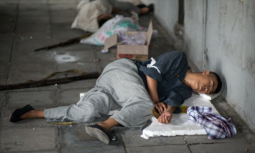 Un extra descansa en el suelo durante una pausa entre escenas. Foto: CFP