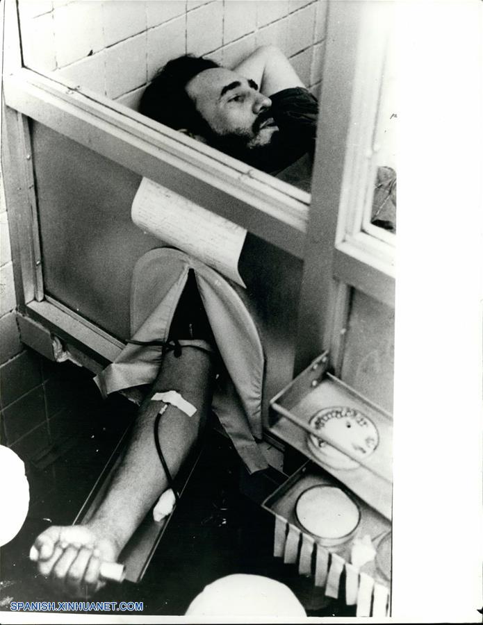 LA HABANA, agosto 11, 2016 (Xinhua) -- Imagen del 6 de junio de 1970, de Fidel Castro, donando sangre para las víctimas del sismo en Perú, en un banco de sangre en La Habana, Cuba. El líder de la Revolución Cubana, Fidel Castro, es una de las figuras políticas que más pasiones despierta en el mundo. El cumplea?os número 90 de Castro, el próximo 13 de agosto, vuelve a acaparar la atención mundial hacia Cuba, un país que en la actualidad vive cambios políticos de gran trascendencia para el curso del Caribe y el mundo. Fidel Castro nació el 13 de agosto de 1926 en Birán, en la antigua provincia de Oriente, hoy Holguín, situada en el noreste de Cuba, hijo del inmigrante gallego Angel Castro y la campesina cubana Lina Ruz. En 2006, tras someterse a una cirugía por una hemorragia intestinal, entregó de manera temporal la presidencia a su hermano Raúl, segunda figura política de la Revolución, y el 19 de febrero de 2008 declinó su reelección. En la actualidad está retirado de todos sus cargos en el Estado, dedicando su tiempo a investigaciones científicas y en algunas ocasiones recibe en su casa a personalidades extranjeras. (Xinhua/Keystone Press Agency/ZUMAPRESS)