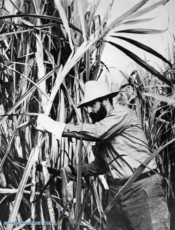 LA HABANA, agosto 11, 2016 (Xinhua) -- Imagen del 29 de abril de 1965, de Fidel Castro, cortando ca?a de azúcar, en La Habana, Cuba. El líder de la Revolución Cubana, Fidel Castro, es una de las figuras políticas que más pasiones despierta en el mundo. El cumplea?os número 90 de Castro, el próximo 13 de agosto, vuelve a acaparar la atención mundial hacia Cuba, un país que en la actualidad vive cambios políticos de gran trascendencia para el curso del Caribe y el mundo. Fidel Castro nació el 13 de agosto de 1926 en Birán, en la antigua provincia de Oriente, hoy Holguín, situada en el noreste de Cuba, hijo del inmigrante gallego Angel Castro y la campesina cubana Lina Ruz. En 2006, tras someterse a una cirugía por una hemorragia intestinal, entregó de manera temporal la presidencia a su hermano Raúl, segunda figura política de la Revolución, y el 19 de febrero de 2008 declinó su reelección. En la actualidad está retirado de todos sus cargos en el Estado, dedicando su tiempo a investigaciones científicas y en algunas ocasiones recibe en su casa a personalidades extranjeras. (Xinhua/Keystone Press Agency/ZUMAPRESS)