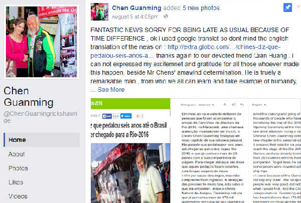 Chen tardó dos a?os y recorrió casi 40.000 millas para llegar a los Juegos Olímpicos de Londres. Para ir a Rio, voló hasta Canadá y luego pedaleó a través de Estados Unidos hasta América del Sur.