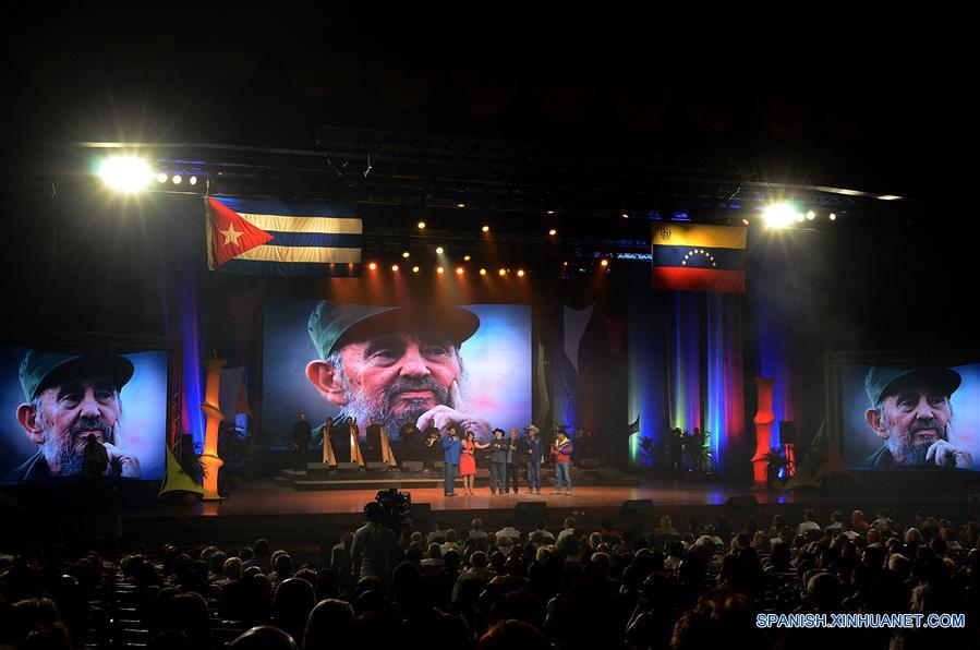 LA HABANA, agosto 14, 2016 (Xinhua) -- Integrantes de la Fundación Corazón Llanero de Venezuela participan en un concierto musical para celebrar el cumplea?os 90 del líder de la Revolución Cubana en el Teatro Karl Marx, en La Habana, capital de Cuba, el 14 de agosto de 2016. De acuerdo con información de la prensa local, la agrupación venezolana Corazón Llanero, un colectivo de artistas venezolanos, ofreció un concierto en la capital de Cuba el domingo como regalo a Fidel Castro, líder histórico de la Revolución Cubana, que cumplió 90 a?os de edad el 13 de agosto. (Xinhua/Joaquín Hernández)