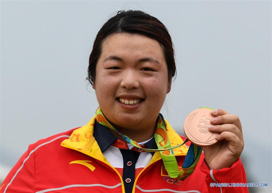 En Río 2016 el golf femenino regresó a la escena olímpica después de 116 a?os, y Feng se ganó la medalla de bronce con un total de 274 con 10 bajo par. Park fue la ganadora con 268.(Xinhua/Liu Dawei)