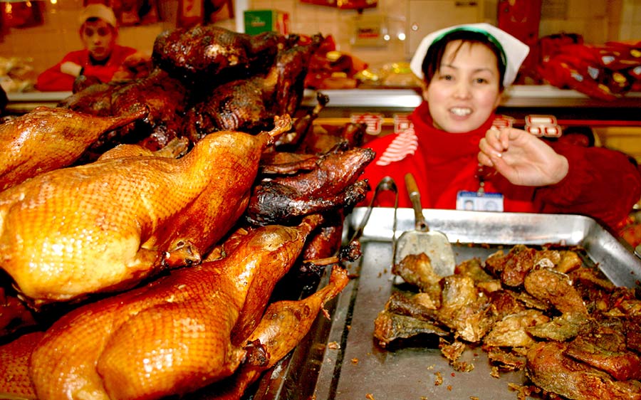 El pato tiene un sabor dulce y según la medicina tradicional China es de naturaleza "refrescante". Una tradición popular es comer pato durante el período solar “Fin del Calor”.Hay muchas recetas para cocinar pato, como el pato asado, el cocido de pato al limón, el ahumado de pato con aderezo de nuez y el pato salteado con brotes de jengibre. La tradición de comer pato durante el período solar “Fin del Calor” es todavía popular en China.