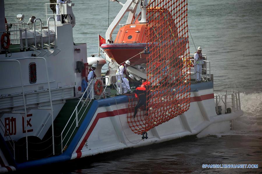 El simulacro está destinado a mejorar la capacidad de respuesta de emergencia de los equipos de salvamento marítimo. (Xinhua/Guo Cheng)